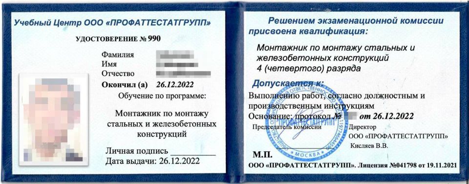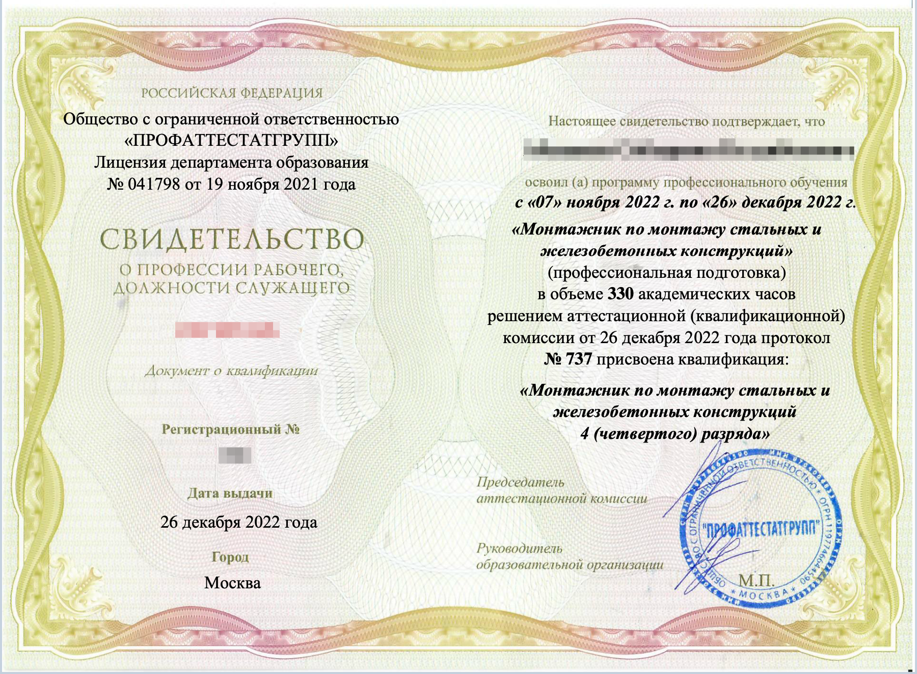 Выдаём документы установленного образца по любой рабочей специальности из реестра РФ — в течение 1–2 дней после обучения/проверки знаний.
